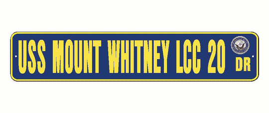 USS MOUNT WHITNEY LCC 20 Aluminum Street Sign Navy Blue / Yellow 6" x 30" Military USN SS002