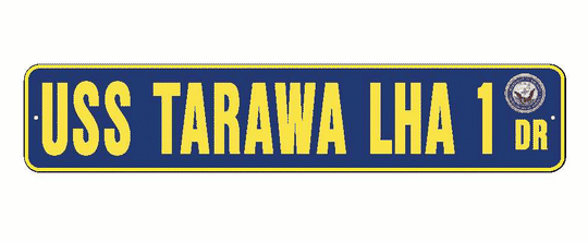 USS TARAWA LHA 1 Aluminum Street Sign Navy Blue / Yellow 6" x 30" Military USN SS002