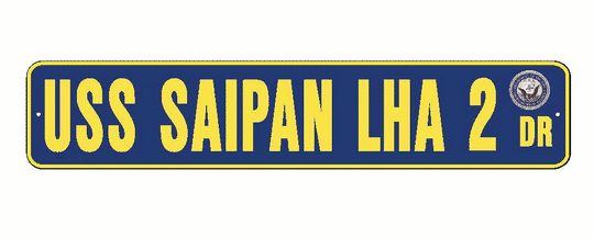 USS SAIPAN LHA 2 Aluminum Street Sign Navy Blue / Yellow 6" x 30" Military USN SS002