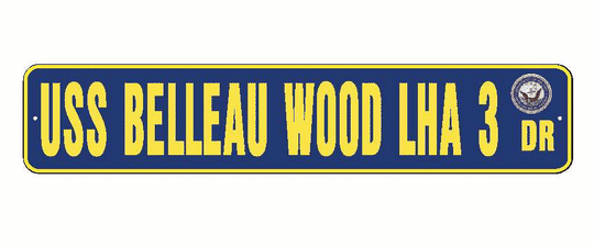 USS BELLEAU WOOD LHA 3 Aluminum Street Sign Navy Blue / Yellow 6" x 30" Military USN SS002