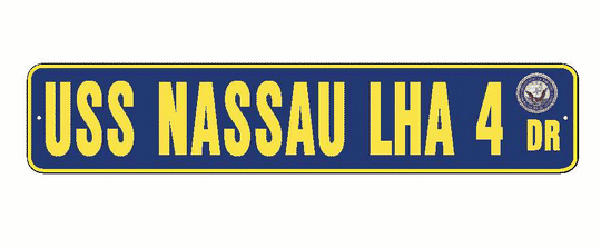USS NASSAU LHA 4 Aluminum Street Sign Navy Blue / Yellow 6" x 30" Military USN SS002