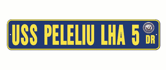 USS PELELIU LHA 5 Aluminum Street Sign Navy Blue / Yellow 6" x 30" Military USN SS002