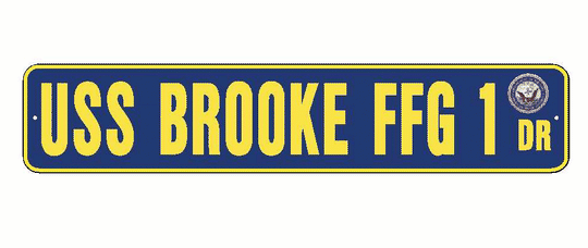 USS BROOKE FFG 1 Aluminum Street Sign Navy Blue / Yellow 6" x 30" Military USN SS002