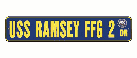 USS RAMSEY FFG 2 Aluminum Street Sign Navy Blue / Yellow 6" x 30" Military USN SS002