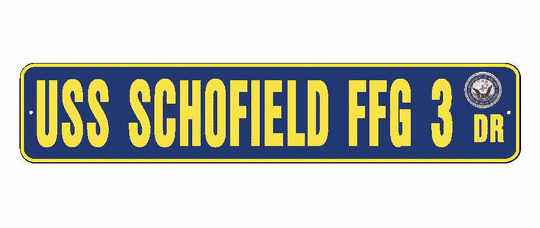 USS SCHOFIELD FFG 3 Aluminum Street Sign Navy Blue / Yellow 6" x 30" Military USN SS002