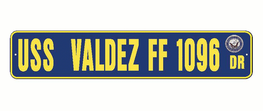 USS VALDEZ FF 1096 Aluminum Street Sign Navy Blue / Yellow 6" x 30" Military USN SS002