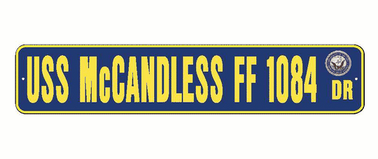 USS McCANDELS FF 1084 Aluminum Street Sign Navy Blue / Yellow 6" x 30" Military USN SS002