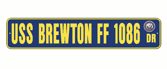 USS BREWTON FF 1086 Aluminum Street Sign Navy Blue / Yellow 6" x 30" Military USN SS002