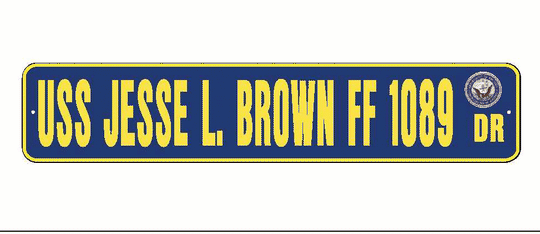 USS JESSE L BROWN FF 1089 Aluminum Street Sign Navy Blue / Yellow 6" x 30" Military USN SS002
