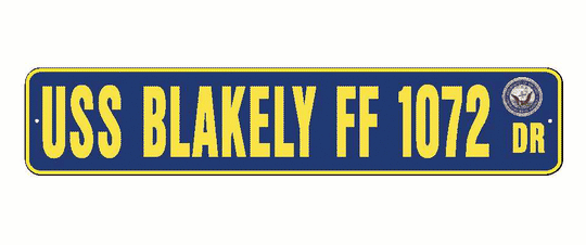 USS BLAKELY FF 1072 Aluminum Street Sign Navy Blue / Yellow 6" x 30" Military USN SS002