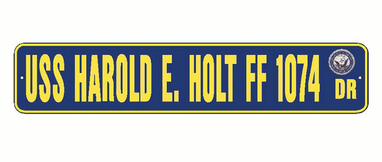 USS HAROLD E HOLT FF 1074 Aluminum Street Sign Navy Blue / Yellow 6" x 30" Military USN SS002