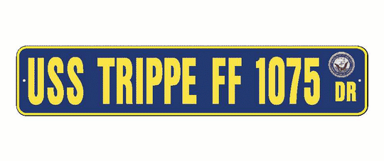 USS TRIPPE FF 1075 Aluminum Street Sign Navy Blue / Yellow 6" x 30" Military USN SS002