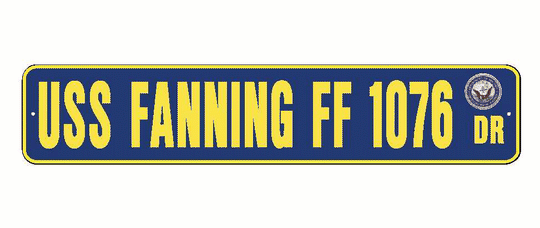 USS FANNING FF 1076 Aluminum Street Sign Navy Blue / Yellow 6" x 30" Military USN SS002