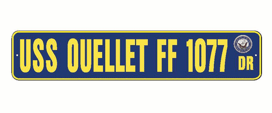 USS OUELLET FF 1077 Aluminum Street Sign Navy Blue / Yellow 6" x 30" Military USN SS002
