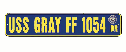 USS GRAY FF 1054 Aluminum Street Sign Navy Blue / Yellow 6" x 30" Military USN SS002