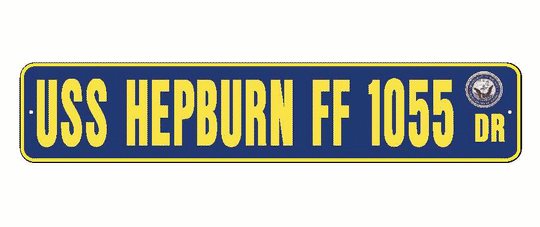 USS HEPBURN FF 1055 Aluminum Street Sign Navy Blue / Yellow 6" x 30" Military USN SS002