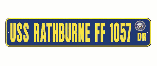 USS RATHBURNE FF 1057 Aluminum Street Sign Navy Blue / Yellow 6" x 30" Military USN SS002