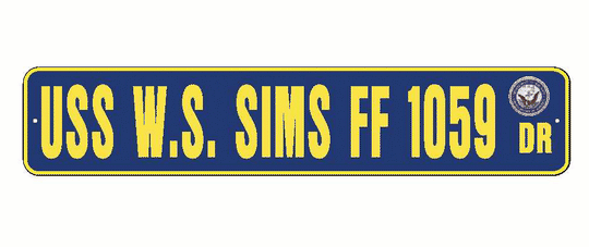 USS W S SIMS FF 1059 Aluminum Street Sign Navy Blue / Yellow 6" x 30" Military USN SS002