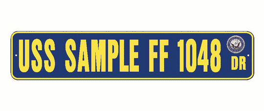USS SAMPLE FF 1048 Aluminum Street Sign Navy Blue / Yellow 6" x 30" Military USN SS002