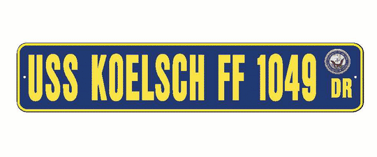 USS KOELSCH FF 1049 Aluminum Street Sign Navy Blue / Yellow 6" x 30" Military USN SS002
