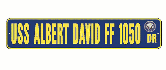 USS ALBERT DAVID FF 1050 Aluminum Street Sign Navy Blue / Yellow 6" x 30" Military USN SS002