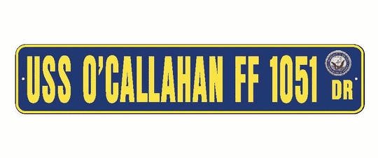 USS O'CALLAHAN FF 1051 Aluminum Street Sign Navy Blue / Yellow 6" x 30" Military USN SS002