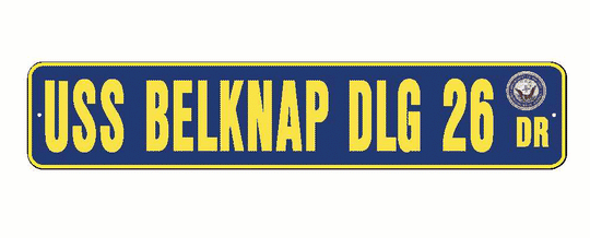 USS BELKNAP DLG 26 Aluminum Street Sign Navy Blue / Yellow 6" x 30" Military USN SS002