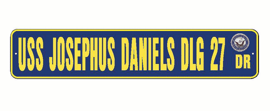 USS JOSEPHUS DANIELS DLG 27 Aluminum Street Sign Navy Blue / Yellow 6" x 30" Military USN SS002