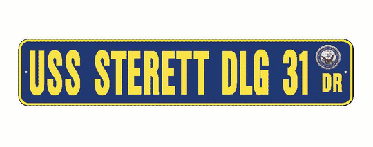 USS STERETT DLG 31 Aluminum Street Sign Navy Blue / Yellow 6" x 30" Military USN SS002