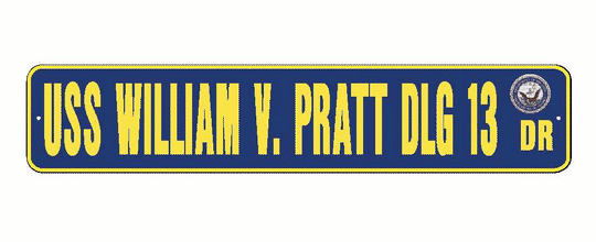 USS WILLIAM V PRATT DLG 13 Aluminum Street Sign Navy Blue / Yellow 6" x 30" Military USN SS002