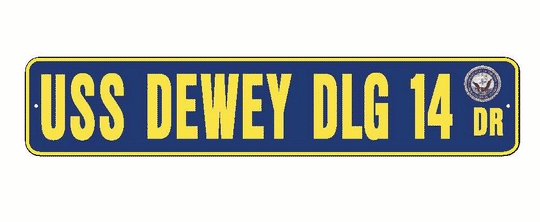 USS DEWEY DLG 14 Aluminum Street Sign Navy Blue / Yellow 6" x 30" Military USN SS002