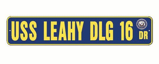 USS LEAHY DLG 16 Aluminum Street Sign Navy Blue / Yellow 6" x 30" Military USN SS002