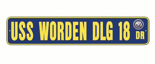 USS WORDEN DLG 18 Aluminum Street Sign Navy Blue / Yellow 6" x 30" Military USN SS002