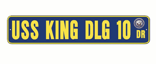 USS KING DLG 10 Aluminum Street Sign Navy Blue / Yellow 6" x 30" Military USN SS002