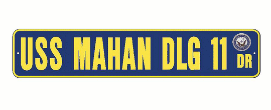 USS MAHAN DLG 11 Aluminum Street Sign Navy Blue / Yellow 6" x 30" Military USN SS002