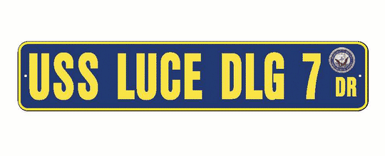 USS LUCE DLG 7 Aluminum Street Sign Navy Blue / Yellow 6" x 30" Military USN SS002