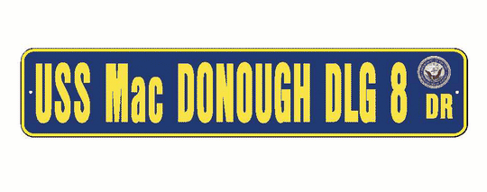 USS MacDONOUGH DLG 8 Aluminum Street Sign Navy Blue / Yellow 6" x 30" Military USN SS002