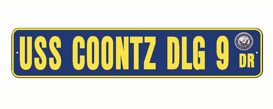 USS COONTZ DLG 9 Aluminum Street Sign Navy Blue / Yellow 6" x 30" Military USN SS002