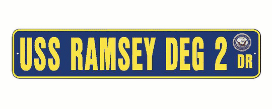USS REMSEY DEG 2 Aluminum Street Sign Navy Blue / Yellow 6" x 30" Military USN SS002