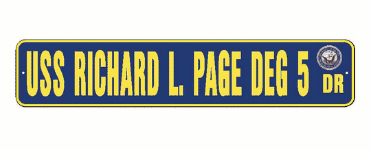 USS RECHARD L PAGE DEG 5 Aluminum Street Sign Navy Blue / Yellow 6" x 30" Military USN SS002