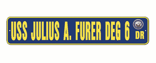 USS JULIUS A FURER DEG 6 Aluminum Street Sign Navy Blue / Yellow 6" x 30" Military USN SS002