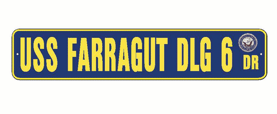 USS FARRAGUT DLG 6 Aluminum Street Sign Navy Blue / Yellow 6" x 30" Military USN SS002