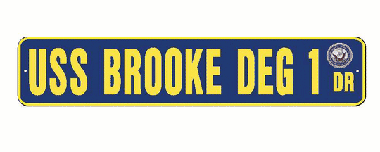 USS BROOKE DEG 1 Aluminum Street Sign Navy Blue / Yellow 6" x 30" Military USN SS002