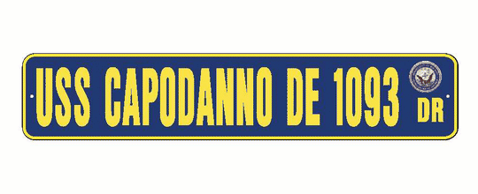 USS CAPODANNO DE 1093 Aluminum Street Sign Navy Blue / Yellow 6" x 30" Military USN SS002