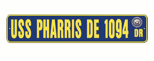 USS PHARRIS DE 1094 Aluminum Street Sign Navy Blue / Yellow 6" x 30" Military USN SS002