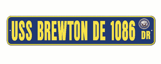 USS BREWTON DE 1086 Aluminum Street Sign Navy Blue / Yellow 6" x 30" Military USN SS002