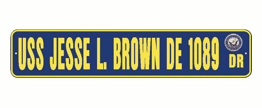 USS JESSE L BROWN DE 1089 Aluminum Street Sign Navy Blue / Yellow 6" x 30" Military USN SS002