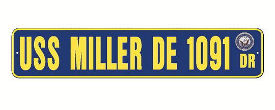 USS MILLER DE 1091 Aluminum Street Sign Navy Blue / Yellow 6" x 30" Military USN SS002