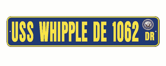 Vendor: American Military Graphics USS WHIPPLE DE 1062 Aluminum Street Sign Navy Blue / Yellow 6" x 30" Military USN SS002 Size: 6" X 30" 2 pre-drilled holes for hanging. Material: .080 Aluminum Color: Navy Blue / Yellow with Navy SealSale price $27.99Regular price $29.99