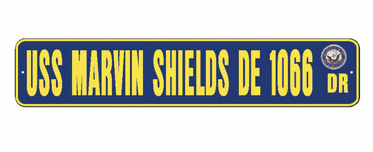 Vendor: American Military Graphics USS MARVIN SHIELDS DE 1066 Aluminum Street Sign Navy Blue / Yellow 6" x 30" Military USN SS002 Size: 6" X 30" 2 pre-drilled holes for hanging. Material: .080 Aluminum Color: Navy Blue / Yellow with Navy SealSale price $27.99Regular price $29.99